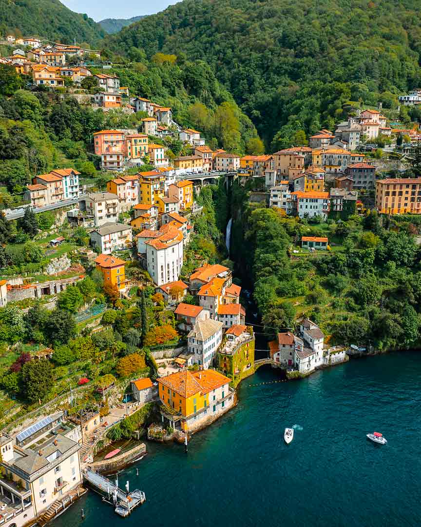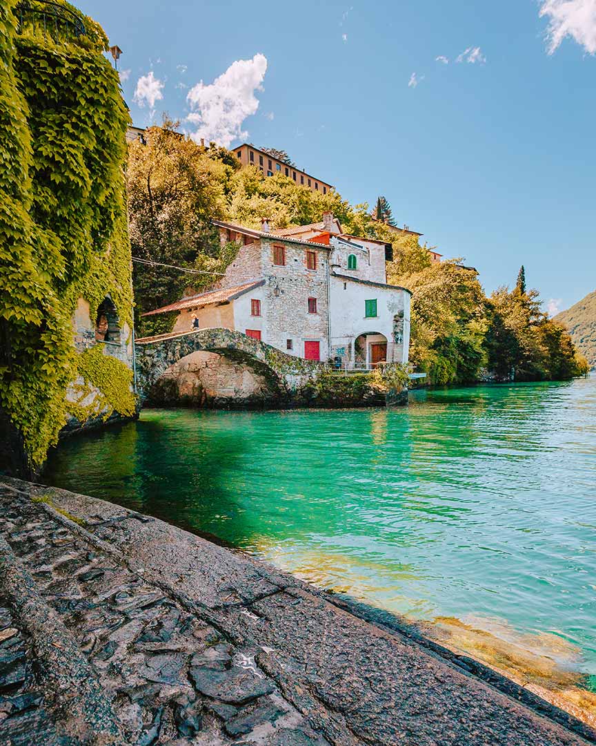 Our most exclusive journey extends further south begins on the western shore in Tremezzina, where Baroque facades and lush botanical gardens dominate the landscape. Heading south, the lake narrows and history runs deep as we approach the lake’s only island, Isola Comacina 🏝️. We continue along the ‘Riva Vecchia,’ passing picturesque villages like Argegno until we reach the wild shores of Nesso with its iconic Roman bridge. We then enter the world of luxury estates in Laglio —home to George Clooney —before crossing toward the eastern bank.